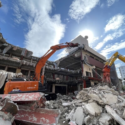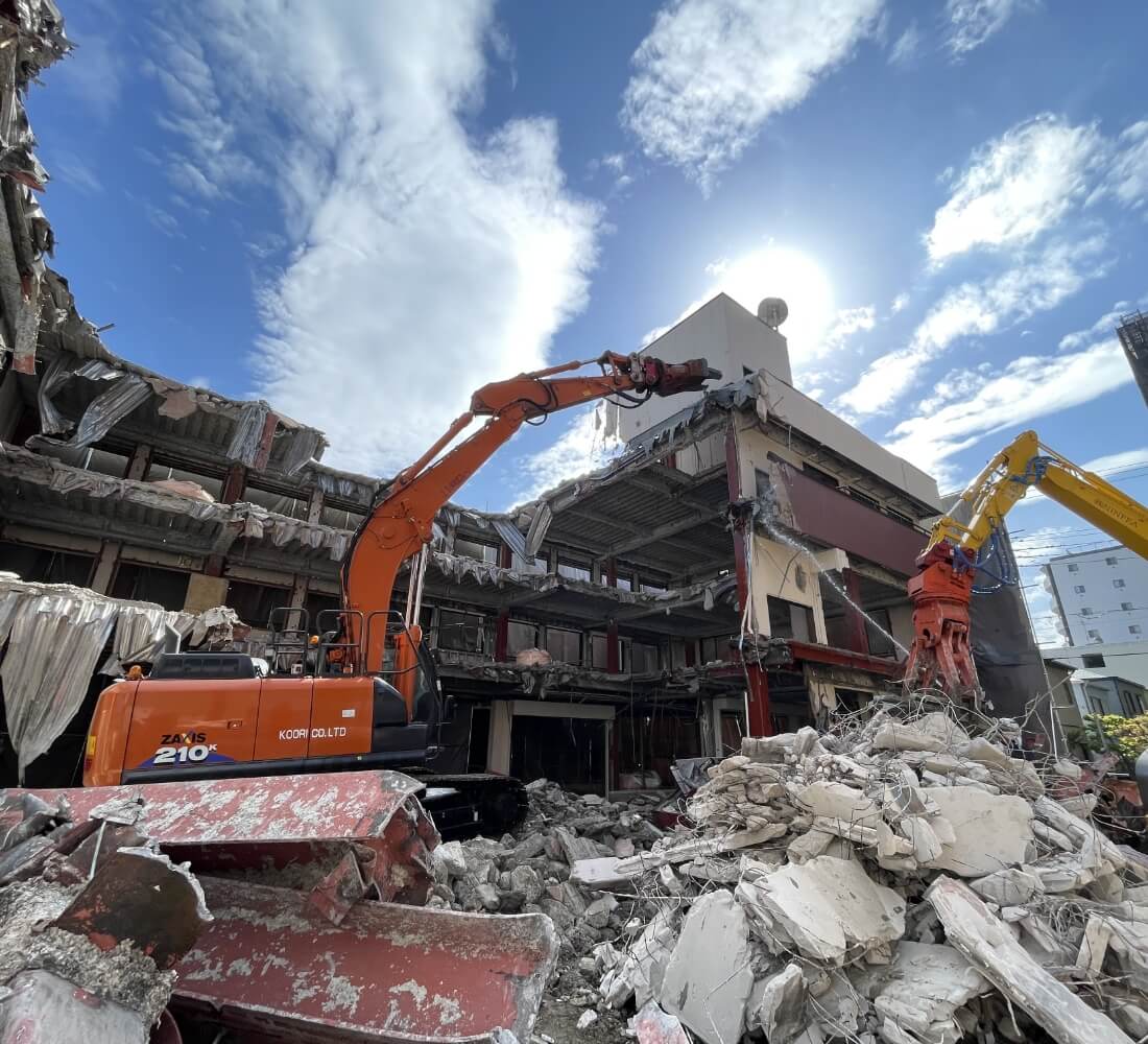 家屋解体工事、とび、足場、外溝工事、外壁塗装、基礎、植木植栽及び手入れ等、様々な解体工事を請け負っており、実績が豊富です。